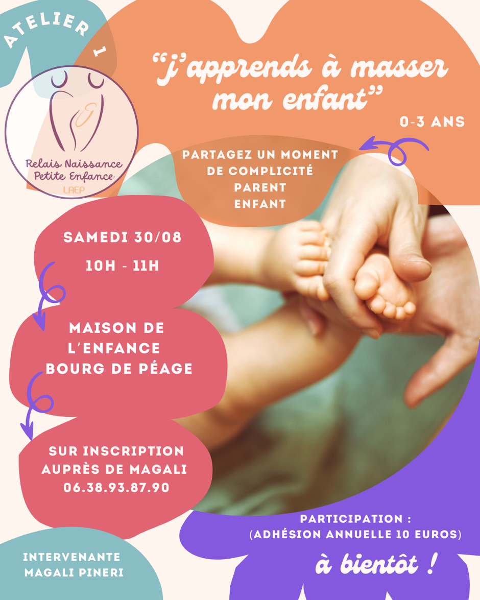 Dans ce nouvel atelier, vous pourrez partager un moment complicité avec votre enfant et apprendre les gestes pour masser votre enfant.