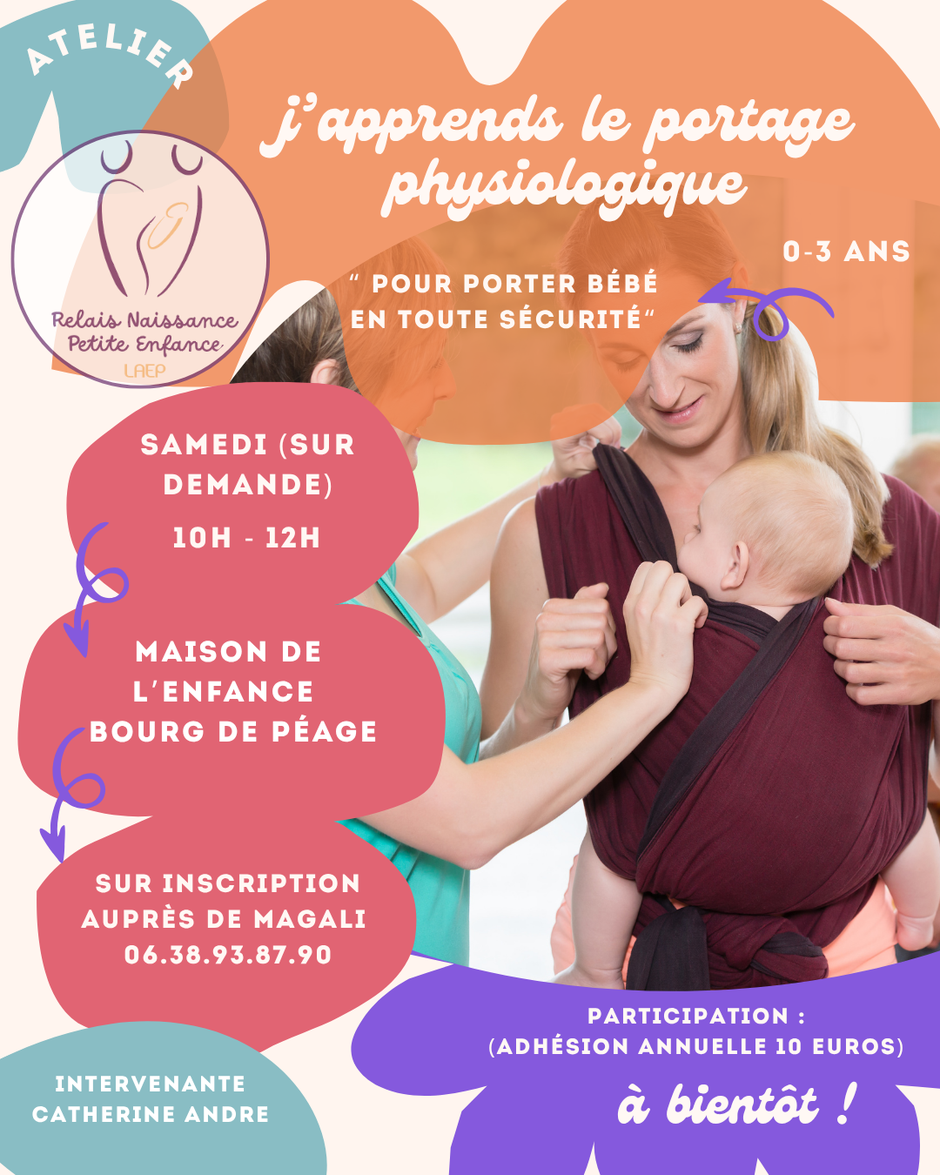 Théorie et pratique se complètent pour apprendre à installer son bébé de manière physiologique et sécuritaire, avec différents moyens de portage (écharpe, ring sling, mei-tai, porte-bébé). Du matériel varié est mis à disposition afin de tester et découvrir plusieurs options.